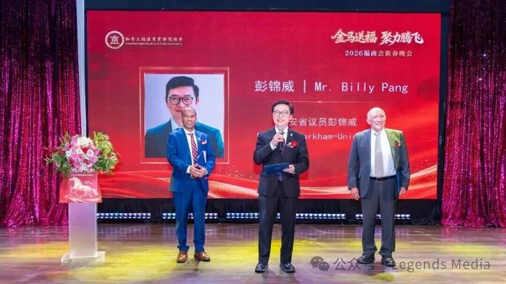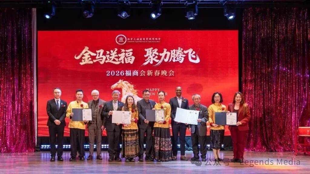 【加拿大共工新闻社多伦多讯】(记者 孙瑞祥)在辞旧迎新的美好时刻,加拿大福建商业联合总会(以下简称“福商会”)隆重举办以“金马送福·聚力腾飞”为主题的2026新春晚会。来自加拿大联邦、省、市三级政府官员,友好商会代表、社团精英及商界翘楚等近500位嘉宾齐聚一堂,共同迎接充满希望与活力的中国传统马年新春。