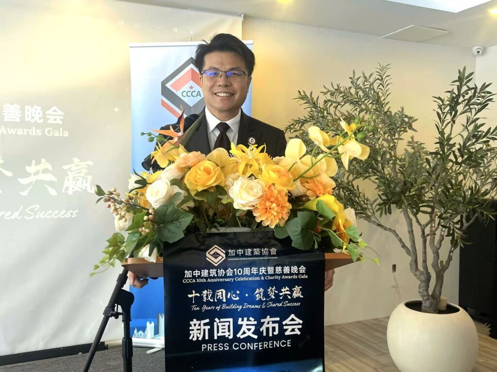 在 2月7日举行的新闻发布会上,加中建筑协会会长Alex Huang表示,十周年庆典内容丰富、形式多元,将涵盖高端行业论坛、专业展览展示、年度行业颁奖、慈善公益募捐及精彩文艺演出等多个重要板块。活动预计将汇聚数百家来自建筑、地产、工程、设计、建材及金融等领域的领军企业,吸引近千位行业精英、政商领袖及专业人士齐聚一堂,共同见证行业发展成果,表彰卓越成就,促进资源共享与合作共赢。他同时特别感谢Aero Future Canada Inc.对本次晚会的主题赞助支持。